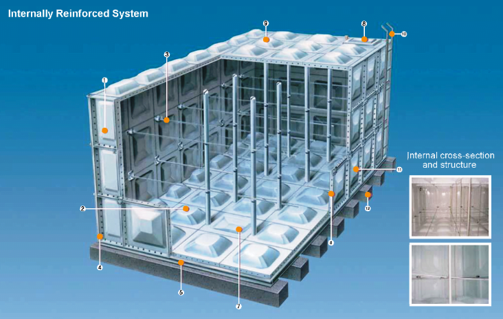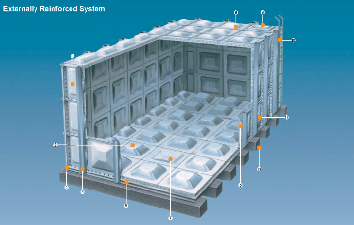 Bể lắp ghép GRP (hay còn gọi là bể chứa nước composite – bể composite ) được lắp ghép từ các tấm vật liệu Polyeste cường lực sợi thủy tinh (GRP). Ngày nay bể chứa nước lắp ghép GRP được sử dụng rộng rãi khắp nơi trên thế giới. Vật liệu này thay thế các vật liệu thông thường như bê tông, nhựa và thép.