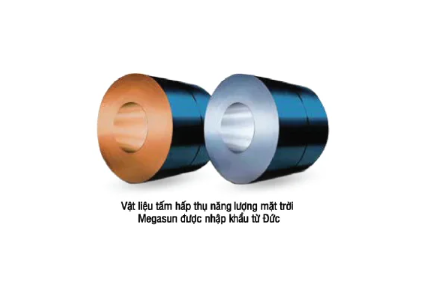 Tấm hấp thụ của Megasun được sản xuất tại Đức ( Made in Germany ) trên dây chuyền công nghệ hàng đầu thế giới – sản phẩm đạt tiêu chuẩn Solar Kemark – với lớp mạ Tinox blue titanium có hiệu suất hấp thu lên đến 96% .